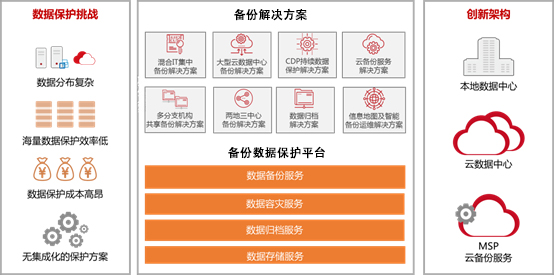 备份是一款企业级数据保护产品,它集虚拟、物理和云环境保护能力于一体,让灾备中心建设和维护更加便捷,具备专注、全面、高效、经济、集成的特点,帮助客户轻松应对 IT 环境日益复杂、数据量持续激增、TCO 居高不下、保护功能单一等挑战。